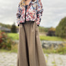 Široké culotte nohavice v hnedej s čistými prednými skladmi a elastickým pásom pre celodenné pohodlie. Prémiová kostýmová textúra, elegantný pád a univerzálny styling – od tenisiek po lodičky. Materiál: VI 45%, WO 30%, PA 23%, EL 2%.